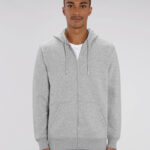 The essential easy-to-wear unisex zip-through hoodie sweatshirt in 300gsm terry crafted from premium 85% organic cotton and 15% recycled polyester and featuring single Jersey hood lining, flatlock stitching, and matt silver trims.