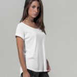 With its oversized sleeves, rounded hem and slightly elongated back, the Women's long slub tee has the classic long tee style. The wide neckline and light single jersey fabric give it a very feminine look. Ideally suited for embellishing with printing.